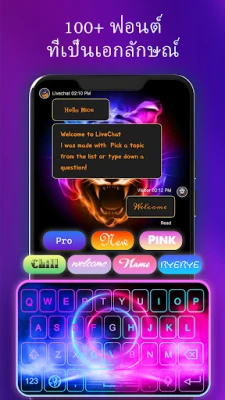 สัมผัสประสบการณ์การพิมพ์ที่ไม่เหมือนใครด้วยแป้นพิมพ์ Neon LED! เปลี่ยนคีย์บอร์ดของคุณให้มีชีวิตชีวาด้วยเอฟเฟกต์แสง LED ที่สวยงามและธีมสีสันสดใส ปรับแต่งได้หลากหลาย พร้อมคลังอีโมจิ สติ๊กเกอร์ และฟอนต์เจ๋งๆ ให้คุณสนุกกับการแชททุกวัน