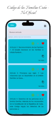 แอปพลิเคชัน Código de las Familias de Cuba นำเสนอแหล่งข้อมูลที่เชื่อถือได้และใช้งานง่ายสำหรับทุกคนที่สนใจในกฎหมายครอบครัว ความเสมอภาค และการคุ้มครองทางสังคม ด้วยอินเทอร์เฟซที่ทันสมัยและใช้งานง่าย คุณสามารถค้นหามาตราต่างๆ ของประมวลกฎหมายได้ด้วยคำสำคัญ หมวดหมู่ หรือหัวข้อเฉพาะ ข้อมูลทั้งหมดในแอปพลิเคชันนี้มาจากเว็บไซต์อย่างเป็นทางการของ Gaceta Oficial de la República de Cuba ทำให้มั่นใจได้ถึงความถูกต้องและข้อมูลที่อัปเดตอยู่เสมอ เหมาะอย่างยิ่งสำหรับมหาวิทยาลัย สำนักงานกฎหมาย ผู้ประกอบวิชาชีพ และประชาชนที่ต้องการทำความเข้าใจกฎหมายคิวบาผ่านโทรศัพท์ Android โดยไม่ต้องพึ่งพาการเชื่อมต่ออินเทอร์เน็ต