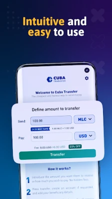 บอกลาการรอคอยที่ยาวนาน ด้วยการโอนเงินแบบทันทีที่รับประกันว่าเงินจะถึงมือผู้รับในคิวบาอย่างรวดเร็ว คุณสามารถส่ง MLC ได้จากทุกประเทศทั่วโลก พร้อมชำระเงินด้วยสกุลเงินท้องถิ่นของคุณเอง ไม่ต้องกังวลเรื่องอัตราแลกเปลี่ยนที่ยุ่งยาก เราให้อัตราแลกเปลี่ยนที่แข่งขันได้และค่าธรรมเนียมต่ำที่สุด เพื่อให้เงินที่คุณส่งไปถึงผู้รับได้มากที่สุด นอกจากนี้ แอปพลิเคชันยังรองรับธนาคารทุกแห่งในคิวบา ไม่ว่าจะเป็น Banco Metropolitano, Banco de Crédito y Comercio, Banco Popular de Ahorro หรือธนาคารอื่นๆ รับประกันความสะดวกสบายในการส่งมอบเงินทุกครั้ง
