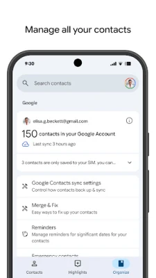 ปกป้องเครือข่ายความสัมพันธ์อันล้ำค่าของคุณด้วยการสำรองข้อมูลรายชื่อติดต่อทั้งหมดอย่างปลอดภัยสู่บัญชี Google ไม่ว่าคุณจะเปลี่ยนอุปกรณ์เครื่องใหม่หรือต้องการเข้าถึงข้อมูลจากที่ใดก็ตาม ข้อมูลติดต่อของคุณจะพร้อมใช้งานอยู่เสมอ เพื่อให้คุณไม่พลาดทุกการเชื่อมต่อที่สำคัญ อุ่นใจได้กับการกู้คืนรายชื่อที่ถูกลบโดยไม่ตั้งใจภายใน 30 วันจากถังขยะดิจิทัล ทำให้มั่นใจได้ว่าทุกรายละเอียดที่มีค่าจะอยู่กับคุณไปตลอด